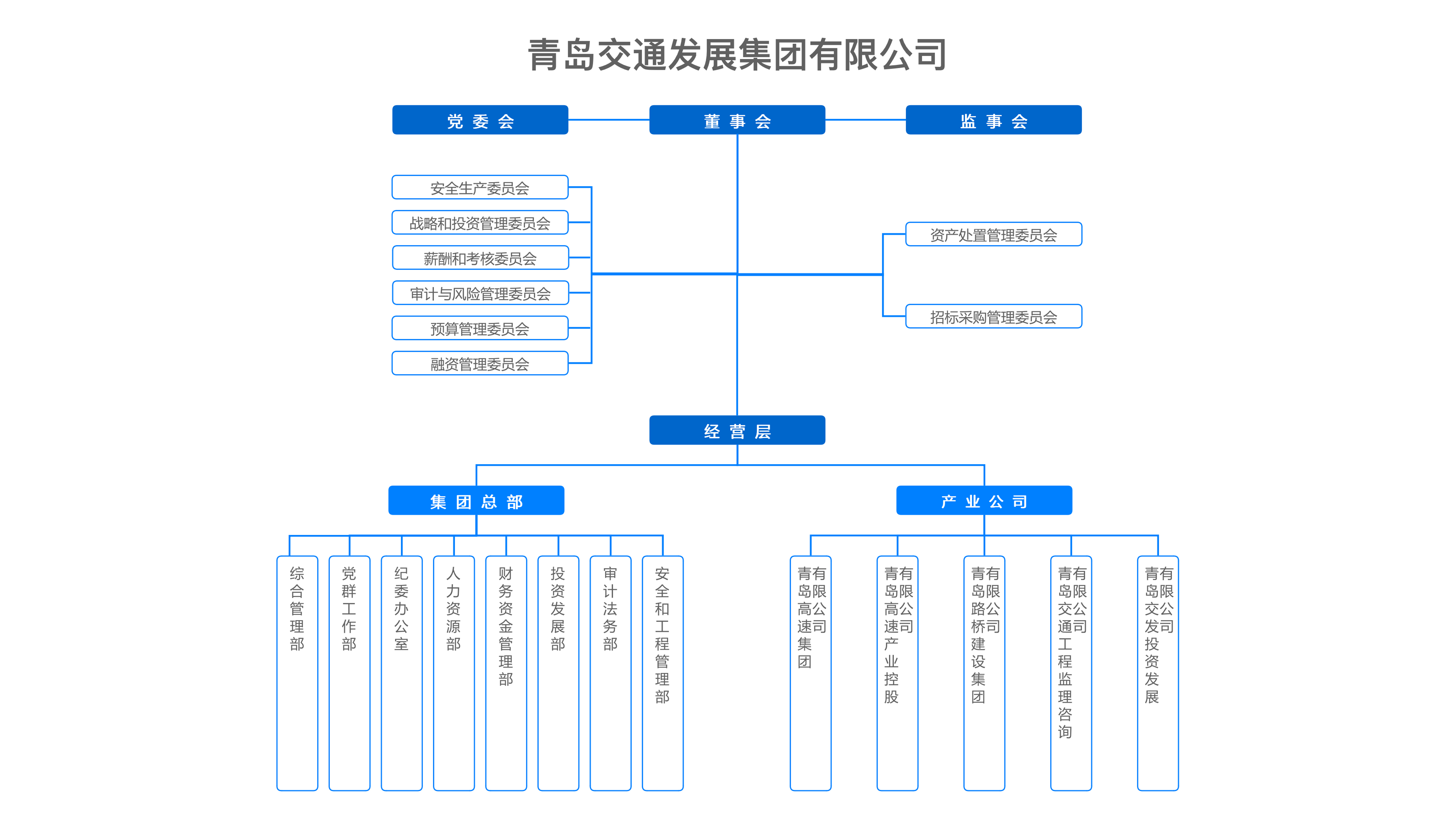 青島交通發(fā)展集團有限公司(以下簡稱“交發(fā)集團”)成立2012年5月,注冊資本10億元,定位為青島市交通建設(shè)投融資主體,負責(zé)所轄高速公路等交通基礎(chǔ)設(shè)施的運營、養(yǎng)護、管理工作和投融資建設(shè)任務(wù),承擔(dān)青島市未來高速公路發(fā)展和交通基礎(chǔ)設(shè)施建設(shè)投融資等職能。現(xiàn)有所屬二級企業(yè)18戶,干部職工2100余人。